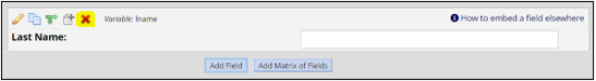 To add a variable: Click on the "Add Field" button, just above or below the area/section that you'd like to insert the new variable/field: To modify a variable: Click on the pencil icon for the field you wish to modify. Edit within the "Edit Field" pop up window Click on the Save button on the bottom right to commit the changes. To delete a variable: Click on the red "X" corresponding to the item that you wish to remove: Click on the Delete button on the "Delete Field" button of the pop-up window to confirm.